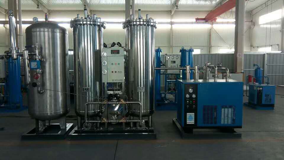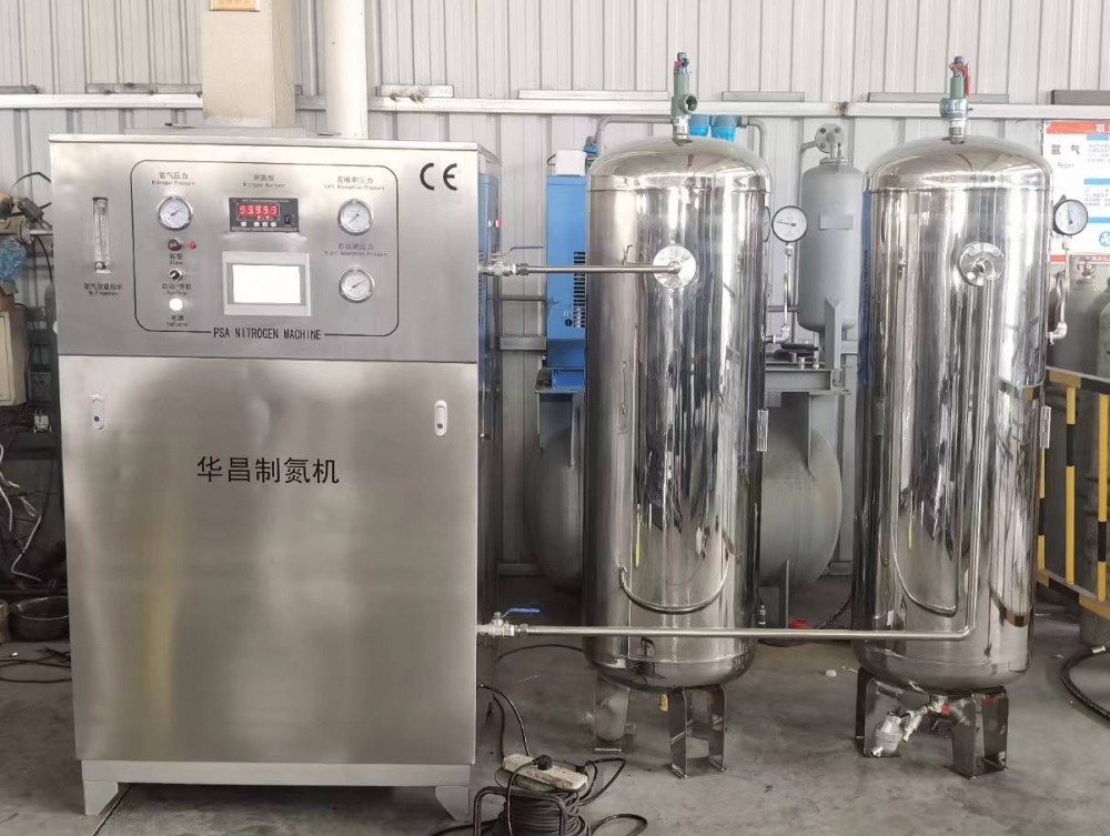 不銹鋼制氮機(jī)廣泛用于制藥、食品包裝等行業(yè)。吸附塔、儲(chǔ)氣罐、連接管路、外殼都是304不銹鋼